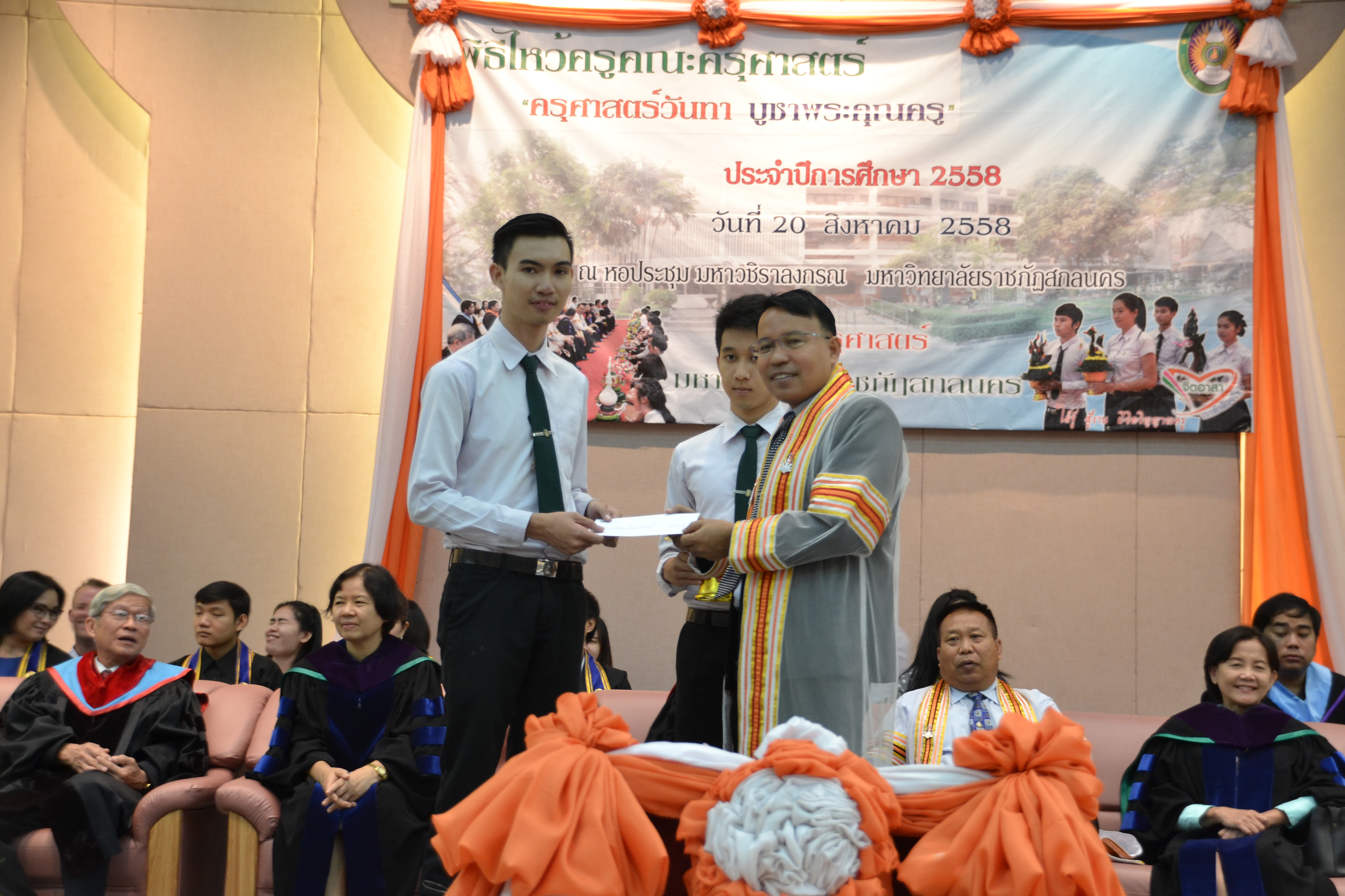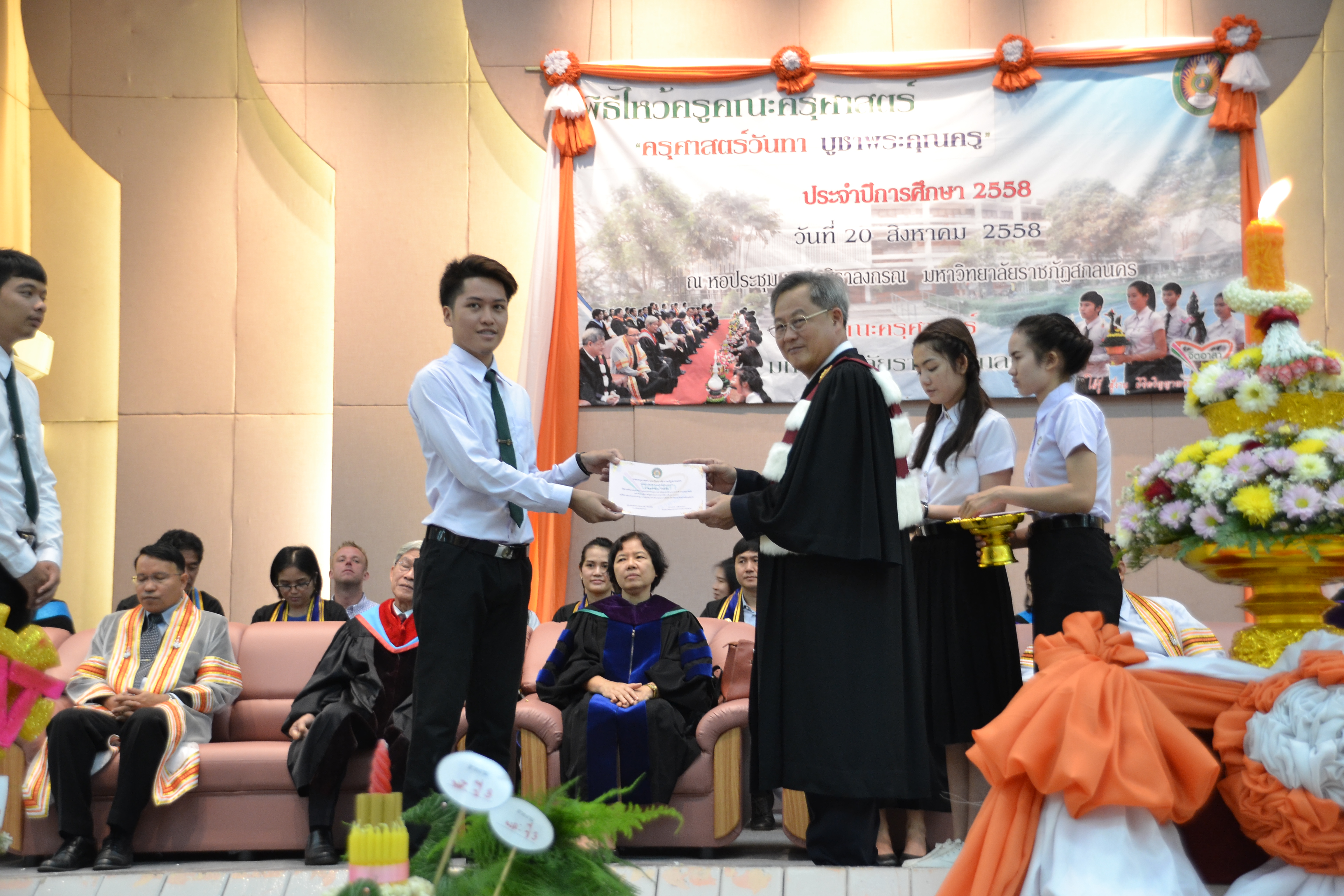 คณะครุศาสตร์จัดพิธีไหว้ครู “ครุศาสตร์วันทา บูชาพระคุณครู” ประจำปีการศึกษา 2558 วันที่ 20 สิงหาคม 2558 ณ หอประชุมมหาวชิราลงกรณ