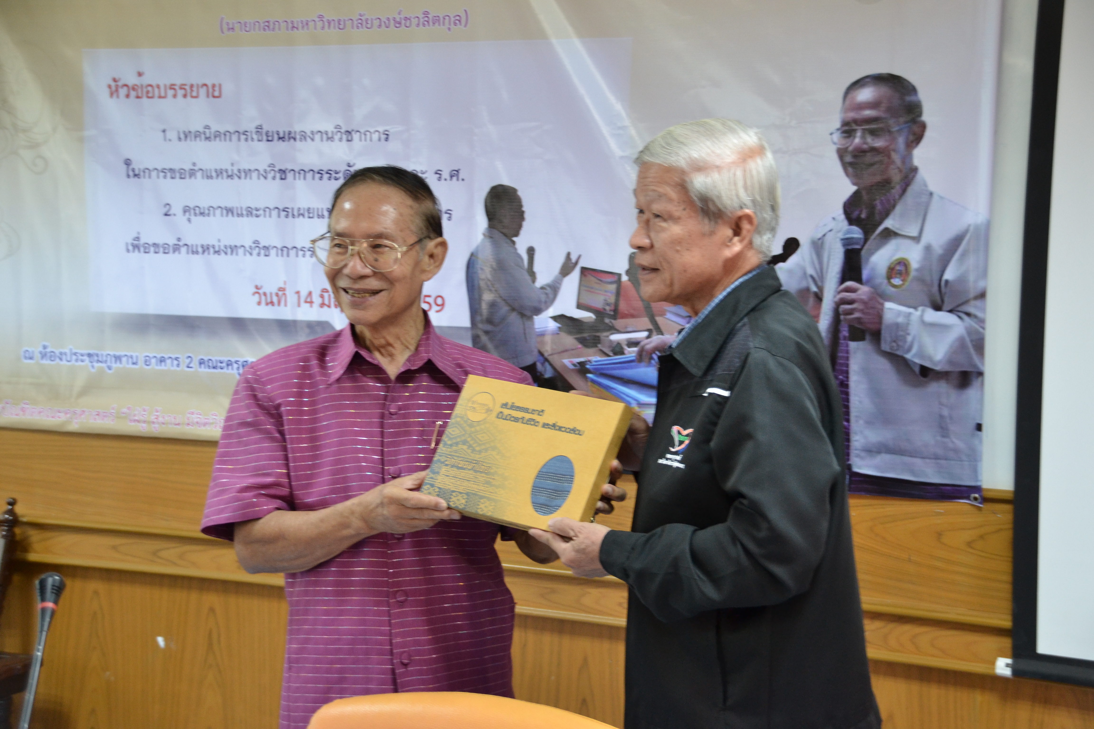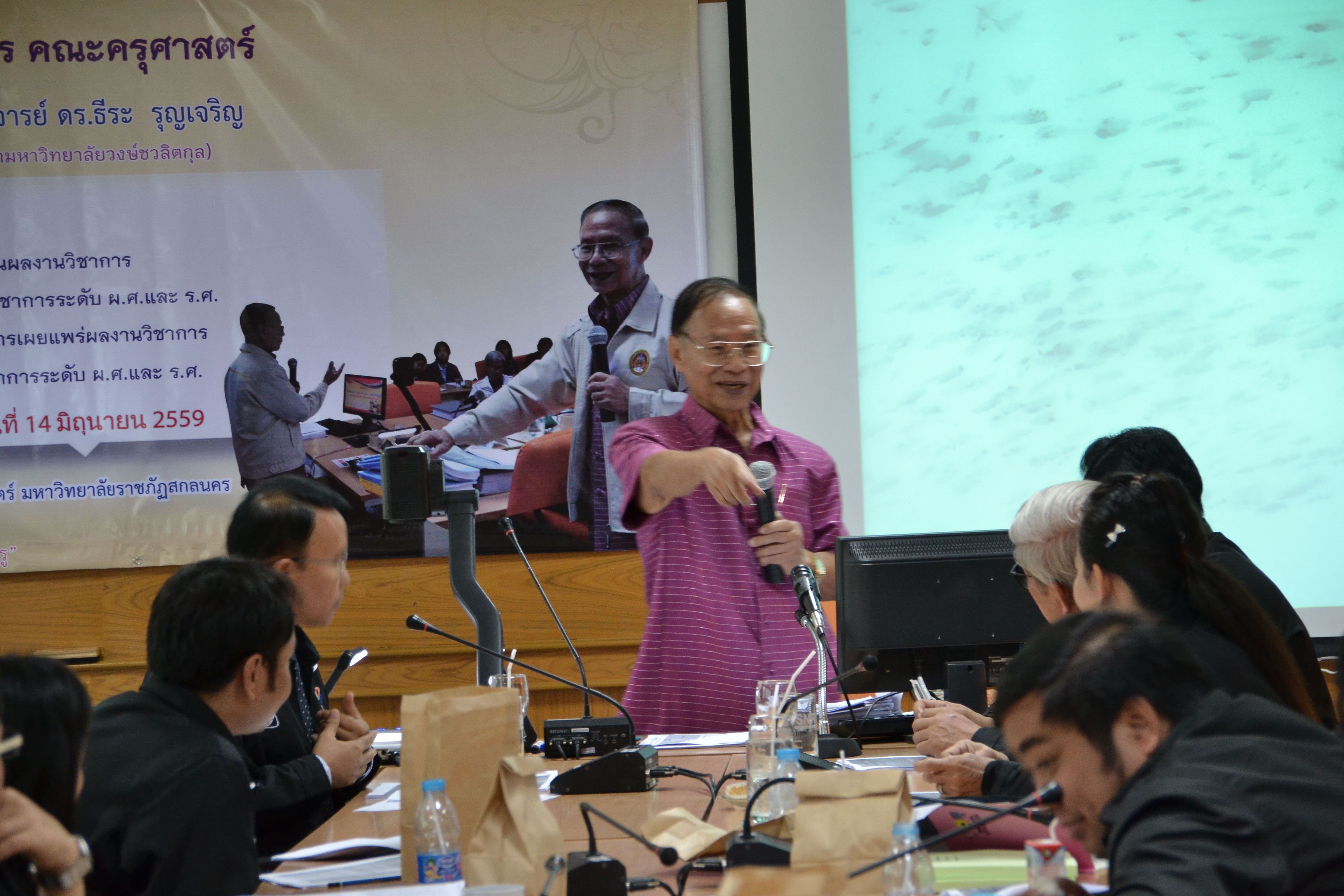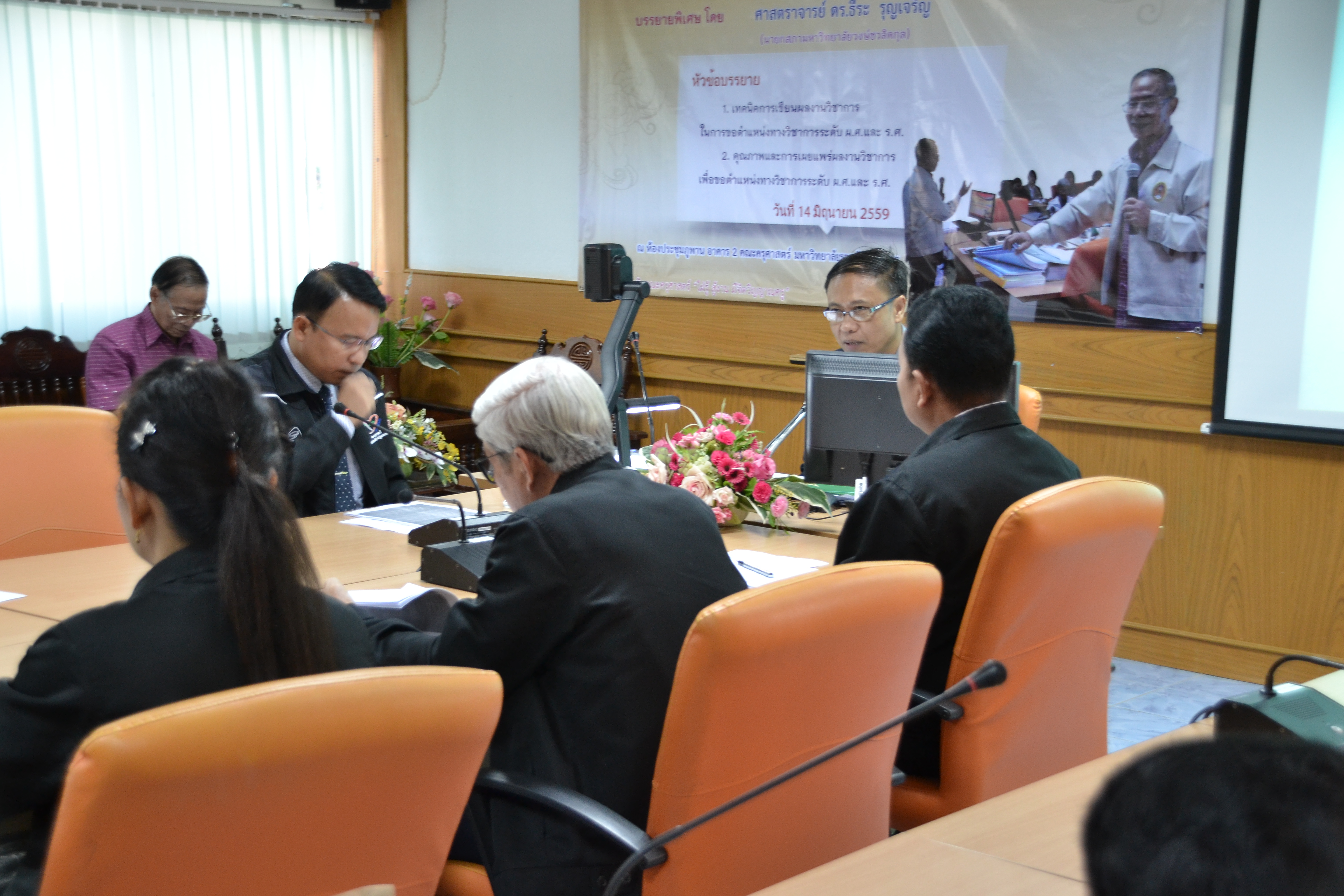 โครงการพัฒนาผลงานทางวิชาการ คณะครุศาสตร์ โดยได้รับเกียรติจาก ศาสตราจารย์ ดร.ธีระ รุญเจริญ เป็นวิทยากรพิเศษ บรรยายหัวข้อ “เทคนิคการเขียนผลงานวิชาการ ในการขอตำแหน่งทางวิชาการ ระดับ ผ.ศ. และ ร.ศ.” วันที่ 14 มิถุนายน 2559 ณ ห้องประชุมภูพาน คณะครุศาสตร์