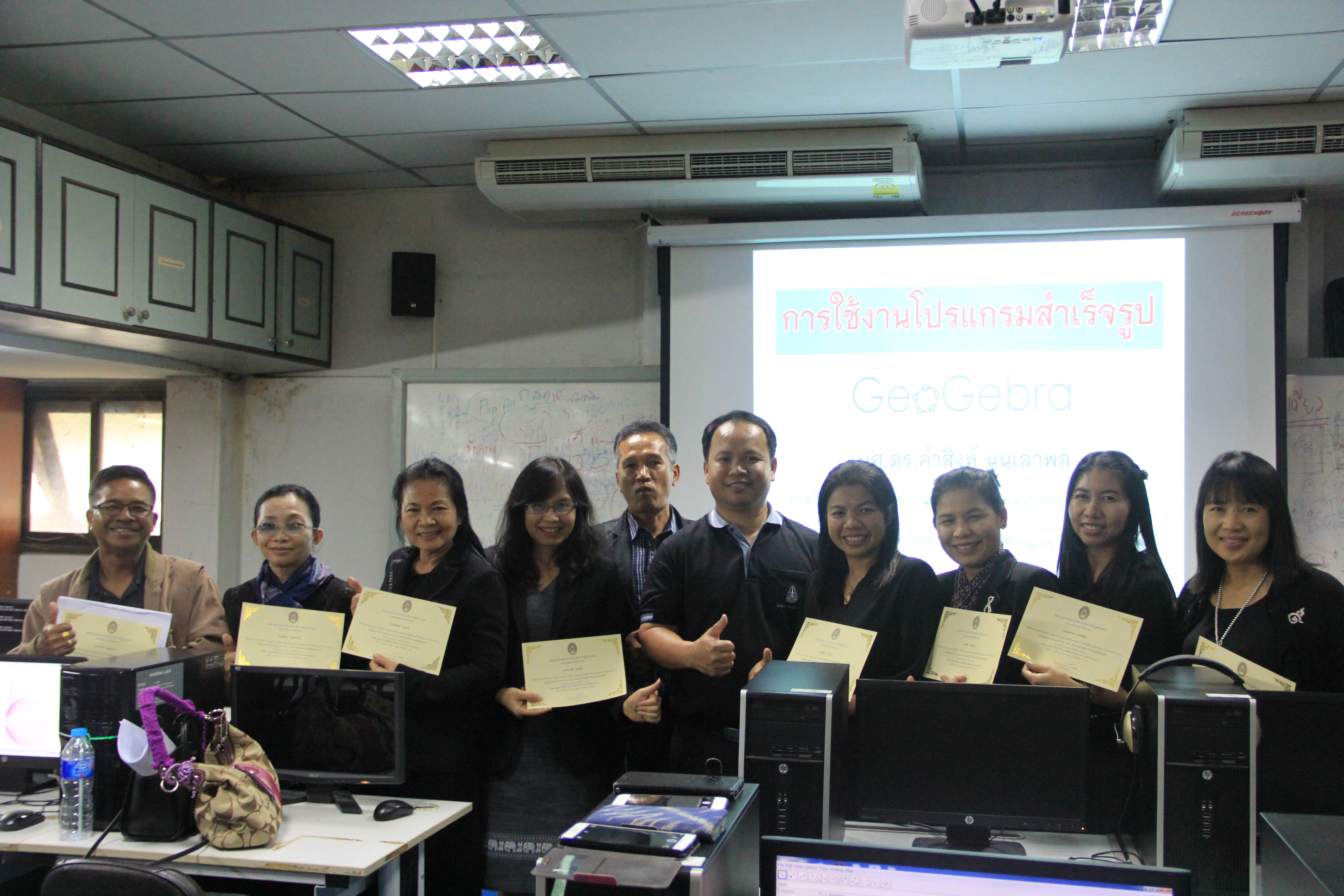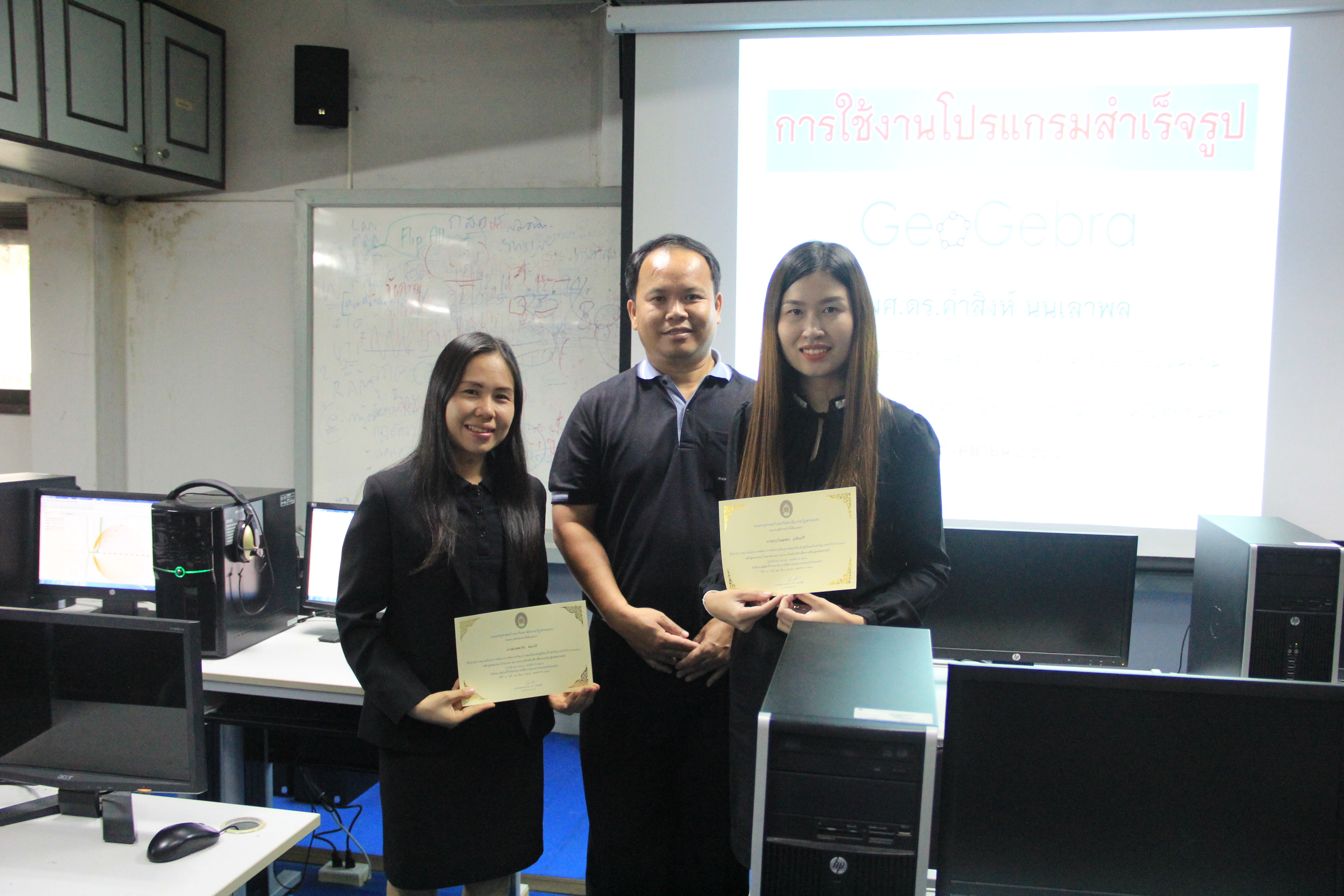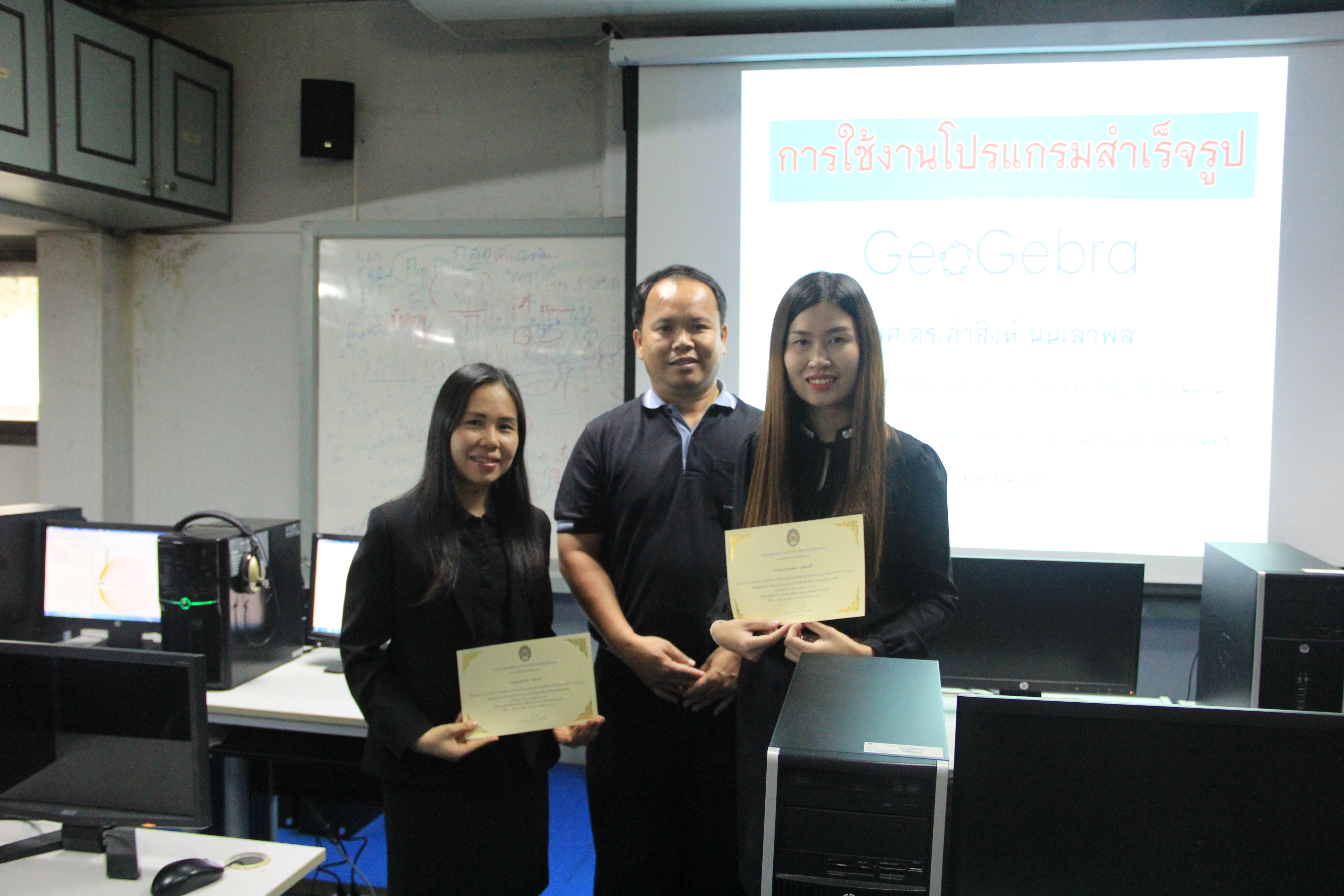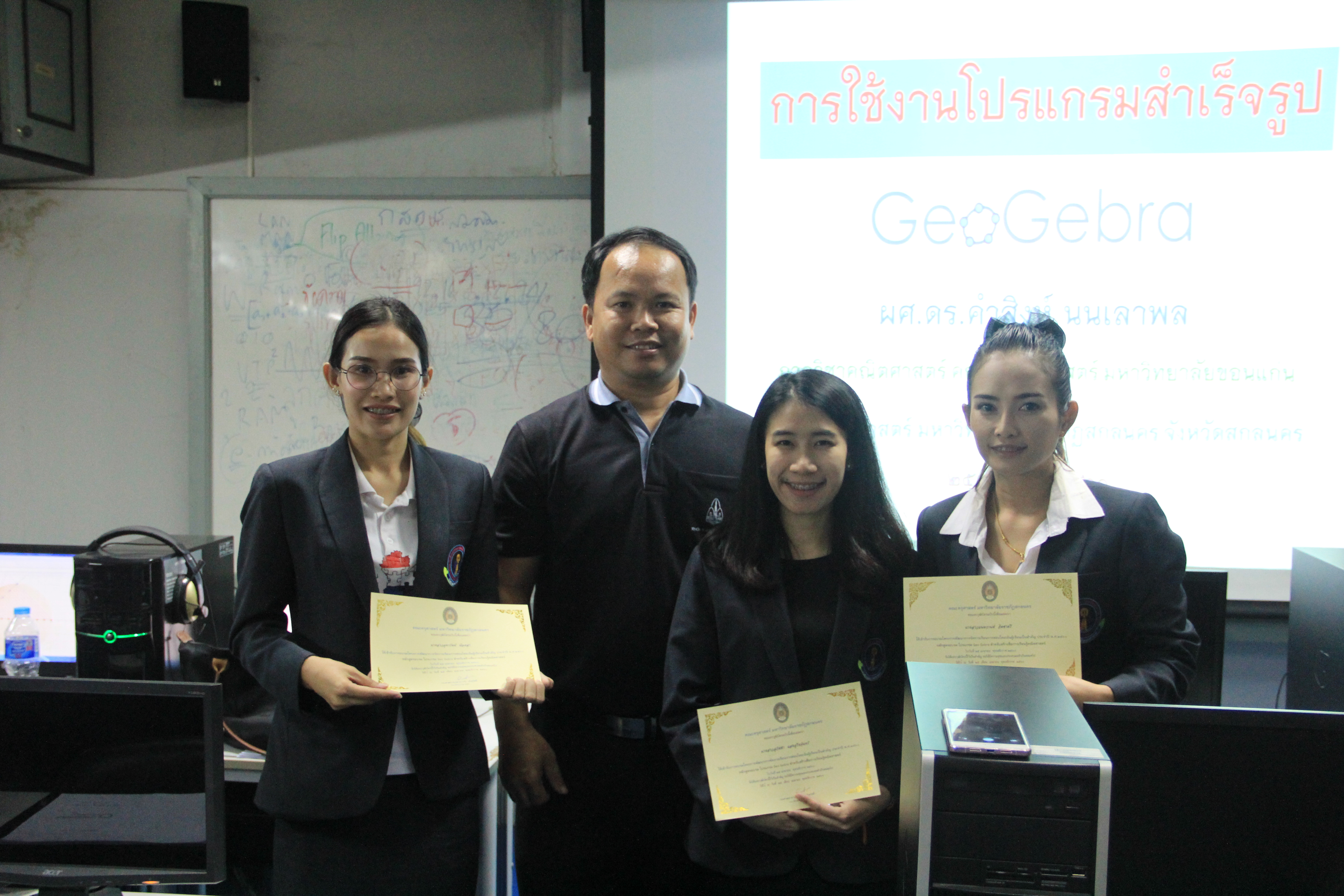โครงการพัฒนาการจัดการเรียนการสอนโดยเน้นผู้เรียนเป็นสำคัญ ประจำปี พ.ศ.2560 หลักสูตร “การอบรมโปรแกรม Geo Gebra สำหรับสร้างสื่อการเรียนรู้คณิตศาสตร์ ” วันที่ 25 เมษายน 2560 ณ ห้องประชุมภูพาน คณะครุศาสตร์