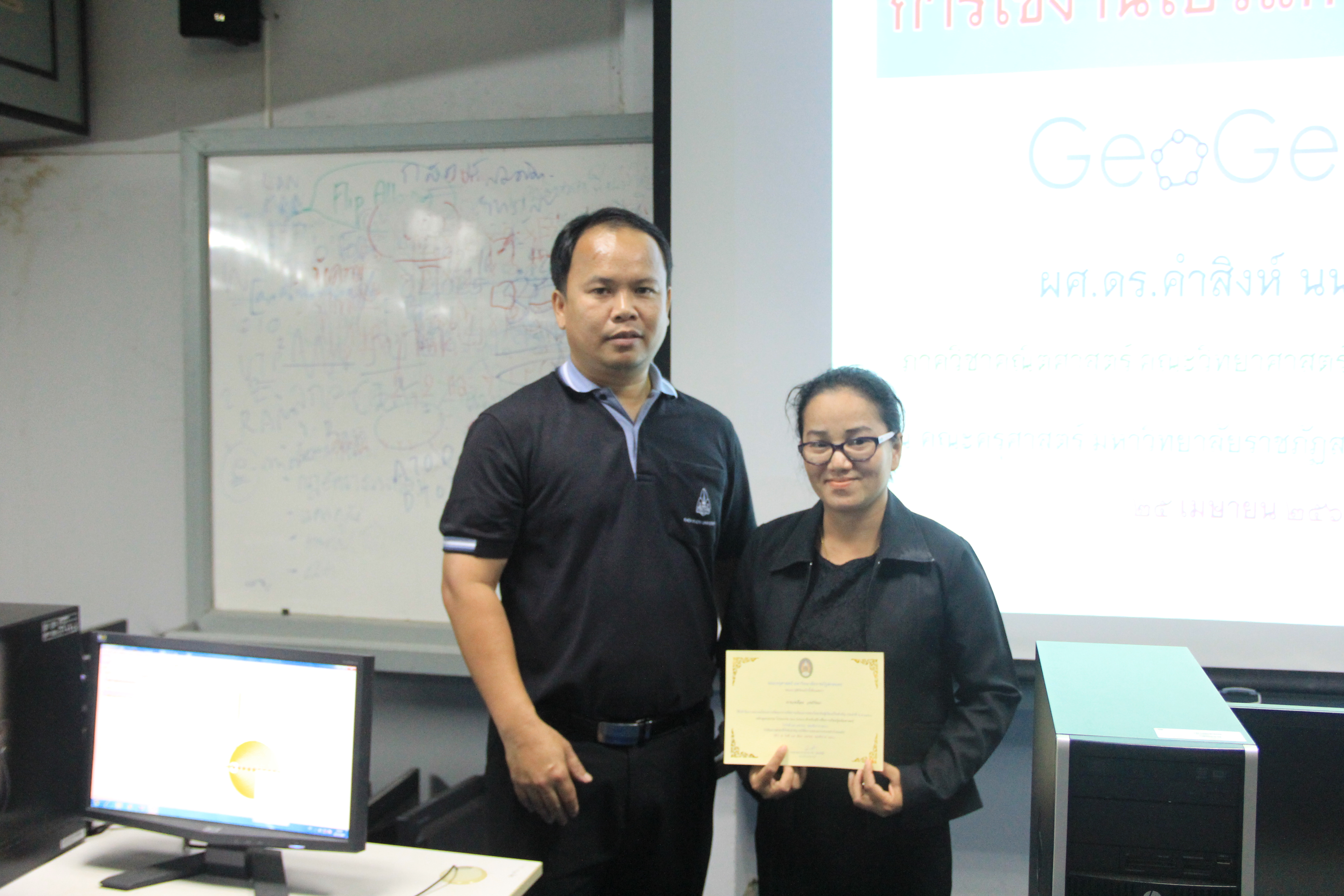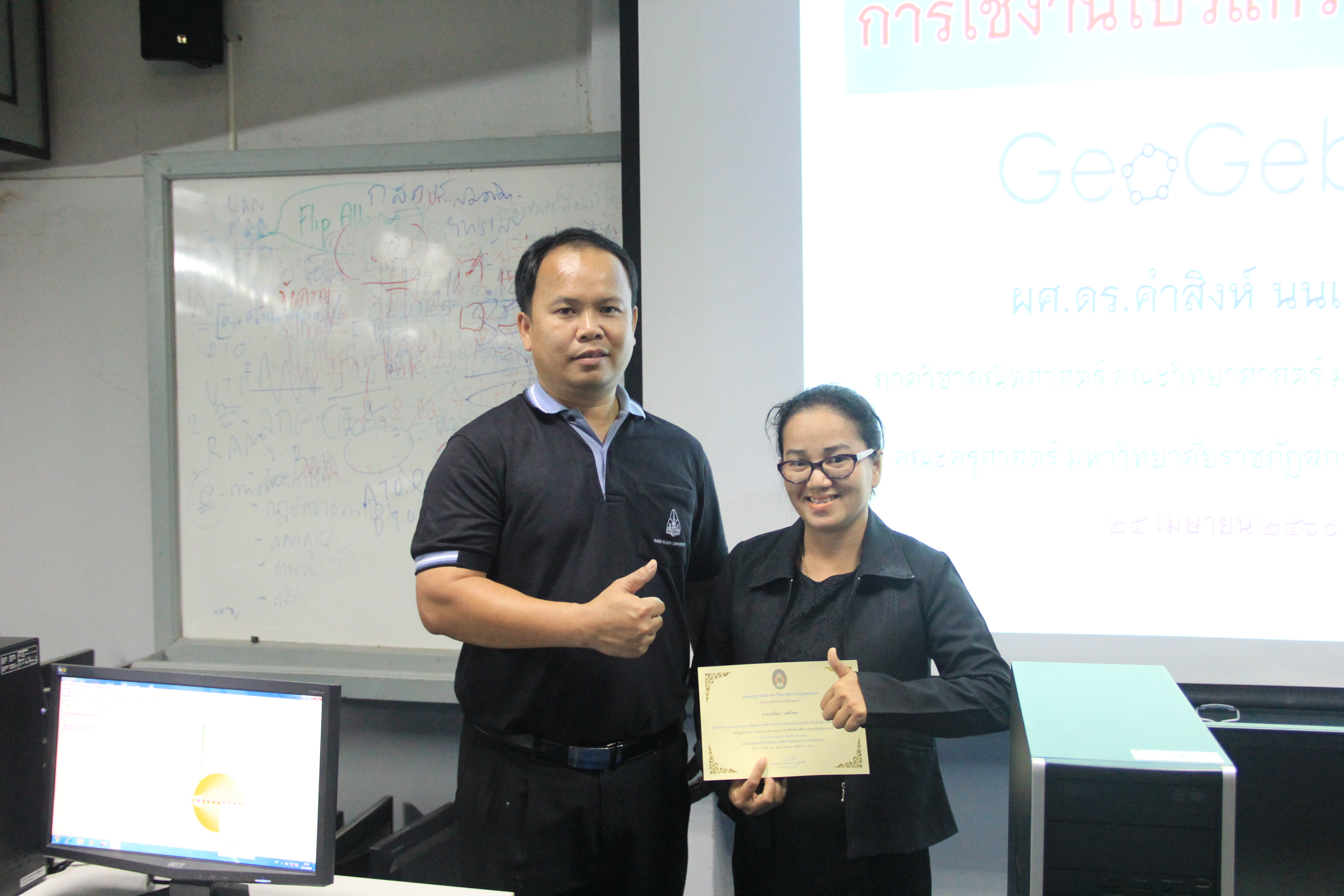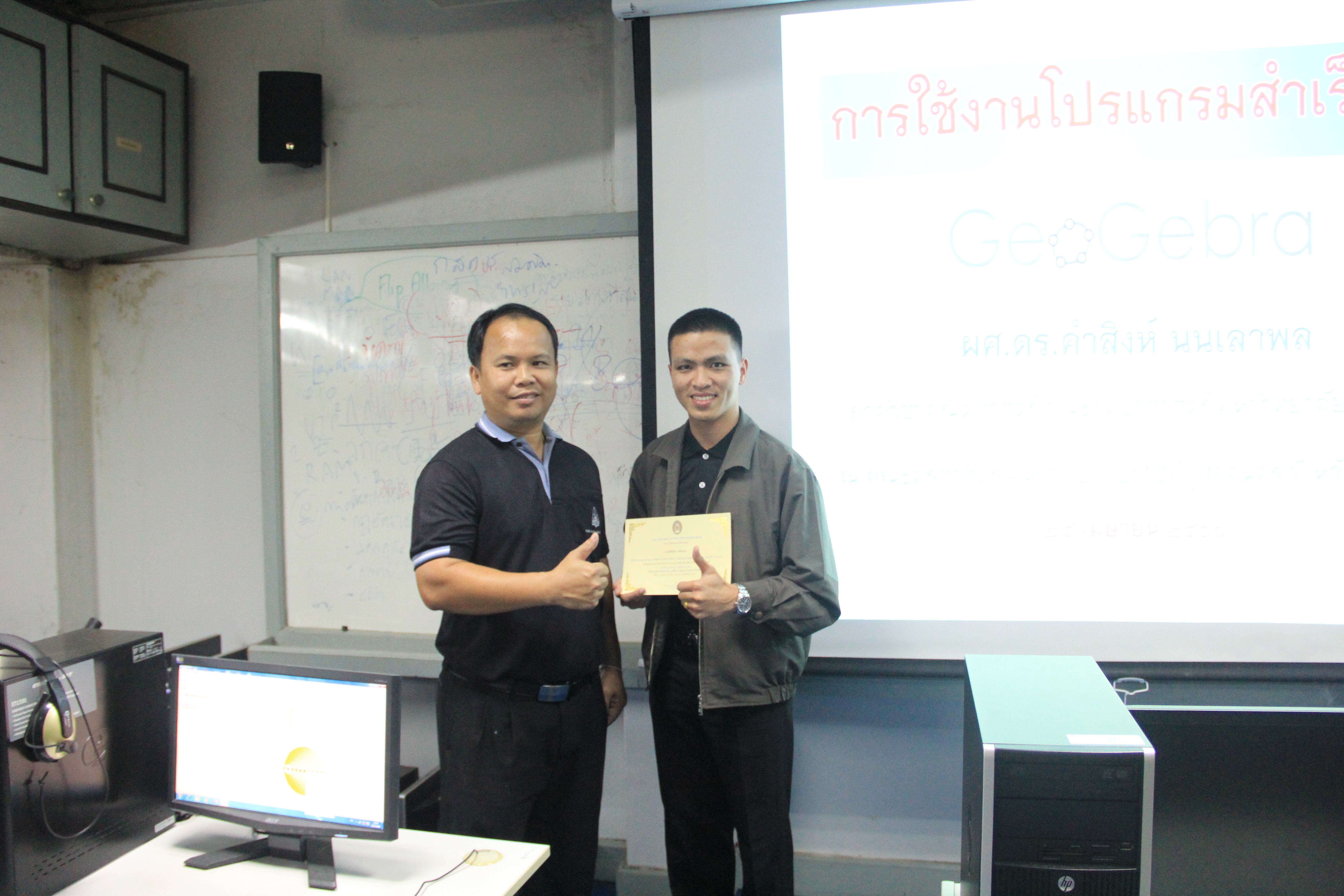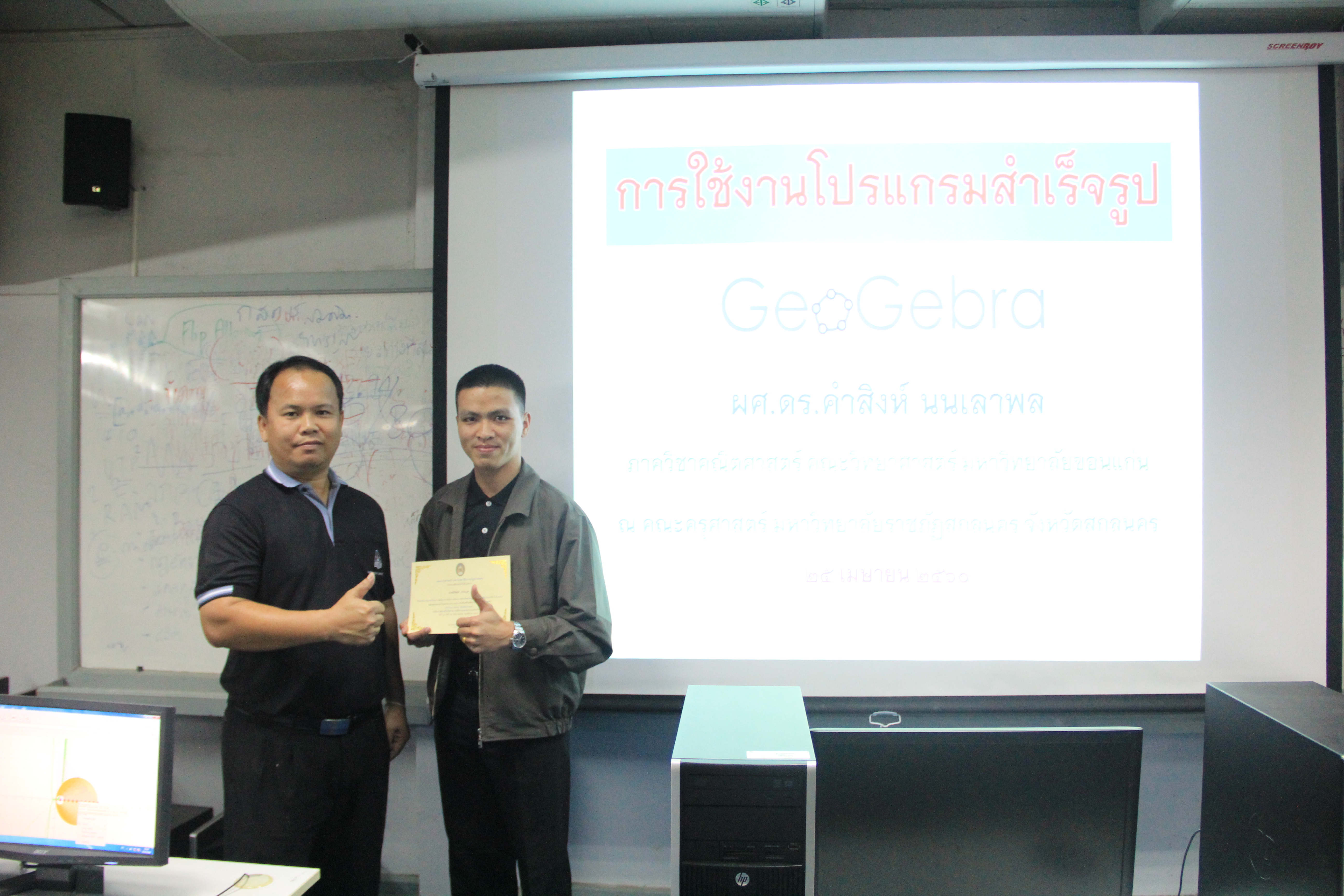 โครงการพัฒนาการจัดการเรียนการสอนโดยเน้นผู้เรียนเป็นสำคัญ ประจำปี พ.ศ.2560 หลักสูตร “การอบรมโปรแกรม Geo Gebra สำหรับสร้างสื่อการเรียนรู้คณิตศาสตร์ ” วันที่ 25 เมษายน 2560 ณ ห้องประชุมภูพาน คณะครุศาสตร์